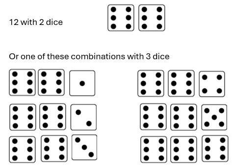 - 3 dice with o total added value of 3