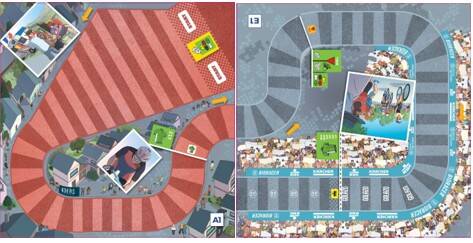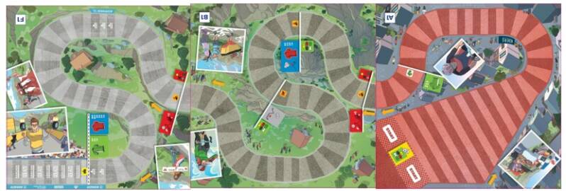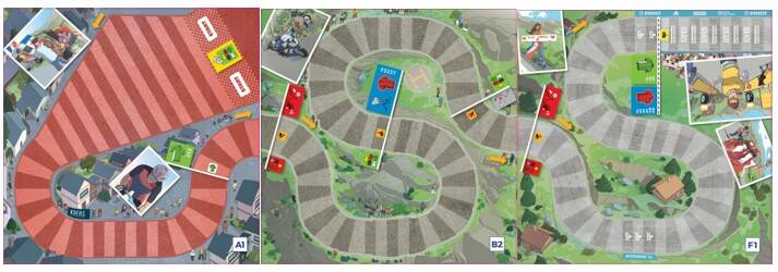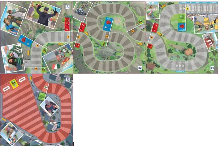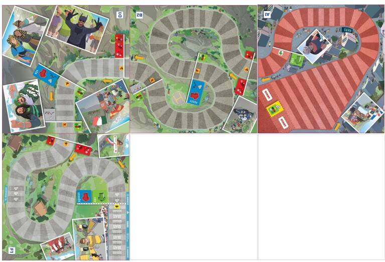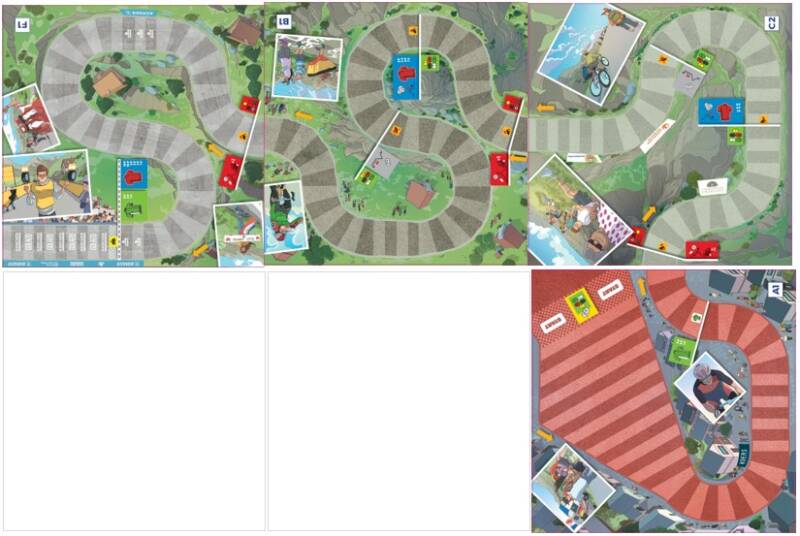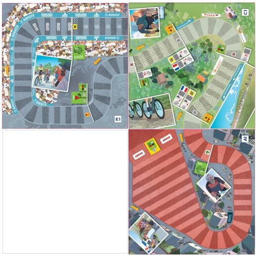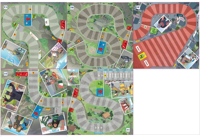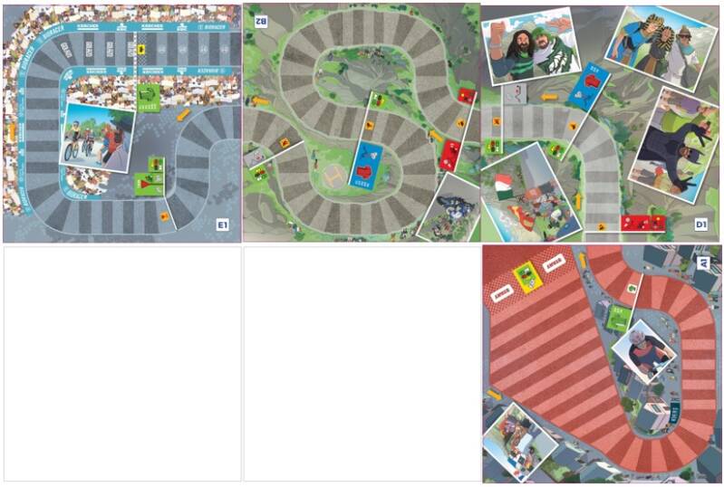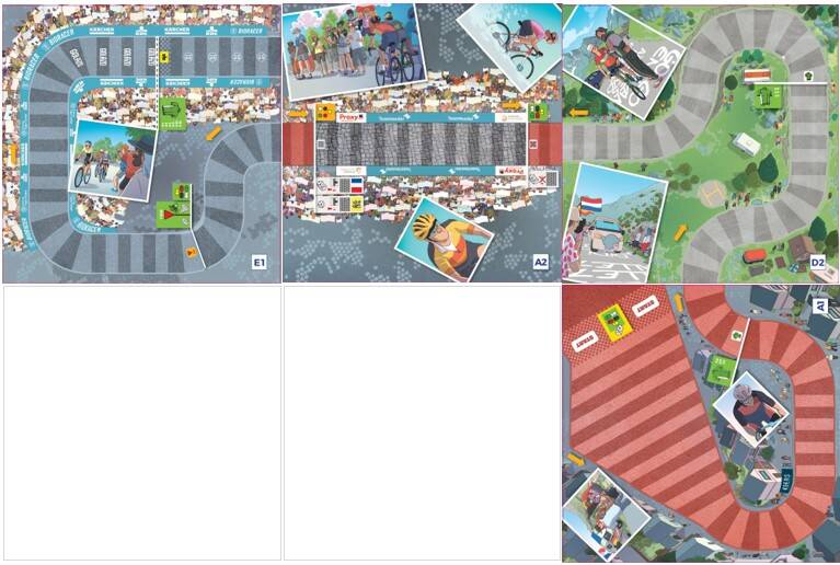Gebruik de borden in deze volgorde: A1-D2-A2-E1 De helling van A2 is een zijn kasseihelling zoals in een Vlaamse klassieker, dus 1 dobbelsteen. Je moet van zodra alle renners van bord A1 af zijn het bord omkeren en laten aansluiten op D2.